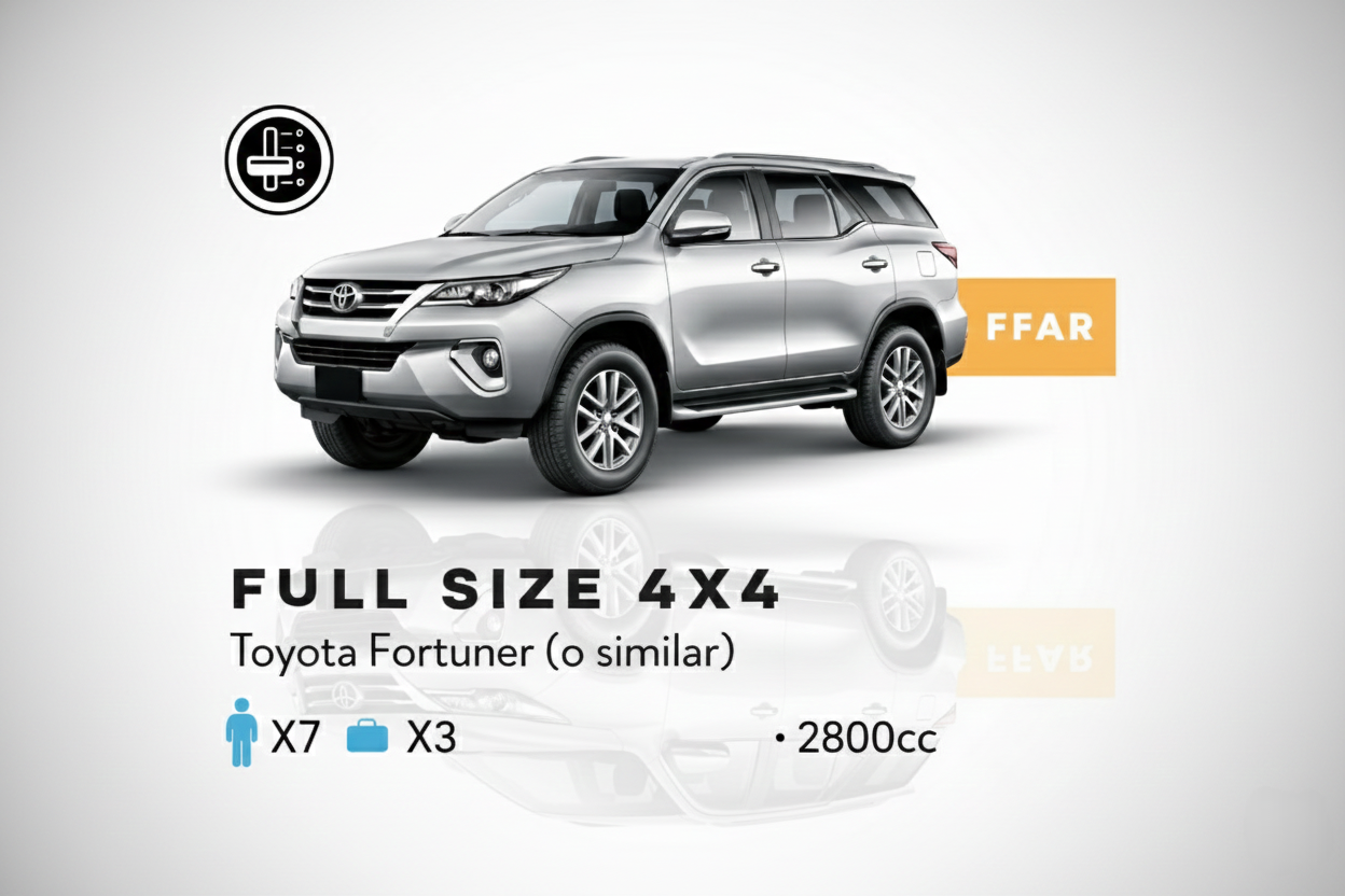 El Toyota Fortuner es perfecto para quienes buscan un SUV grande, cómodo y potente. Su amplio interior y su capacidad 4×4 lo hacen ideal para viajes largos, familias numerosas o aventuras que requieren mayor desempeño.